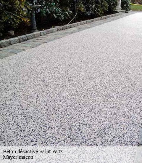 Si vous chercher un maçon professionnel compétent proche de chez vous à Saint Witz, vous êtes déjà sur le bon site. L’artisan Mayer maçon est le maçon qu’il vous faut pour prendre en main la pose de votre béton lavé ou désactivé. La proximité de chez vous, je peux me déplacer jusqu’à votre domicile pour examiner votre chantier et prendre connaissance de votre plan, de votre goût esthétique et les personnalisations que vous souhaiterez apporter. Sachez que tous mes déplacements dans le 95470 ne seront aucunement facturé.
